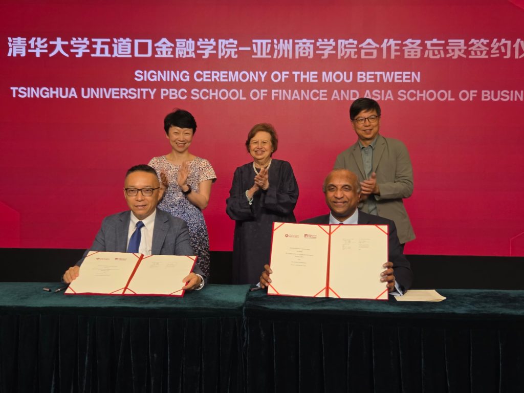 In a significant step toward deepening regional collaboration in education and talent development, the Asia School of Business and the Tsinghua University PBC School of Finance (Tsinghua PBCSF) have signed a Memorandum of Understanding (MoU) establishing a framework for long-term cooperation between two leading academic institutions in Asia.