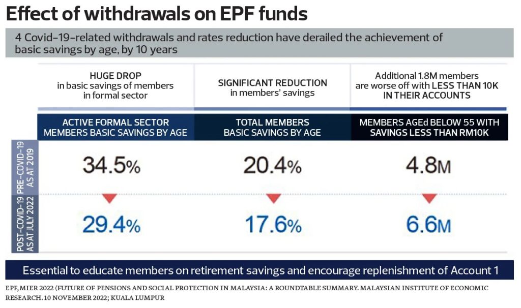 1. The default mode on retirement should be a version of the EPF periodical payment withdrawal scheme. This provides for a regular income stream during retirement instead of a lump sum withdrawal. The latest EPF 2021 annual report states that only 271 members are on this scheme. Down south, Singapore’s Central Provident Fund (CPF) has implemented such measures more than a decade ago with the introduction of the Retirement Sum Scheme (RSS) and later, the CPF LIFE scheme.