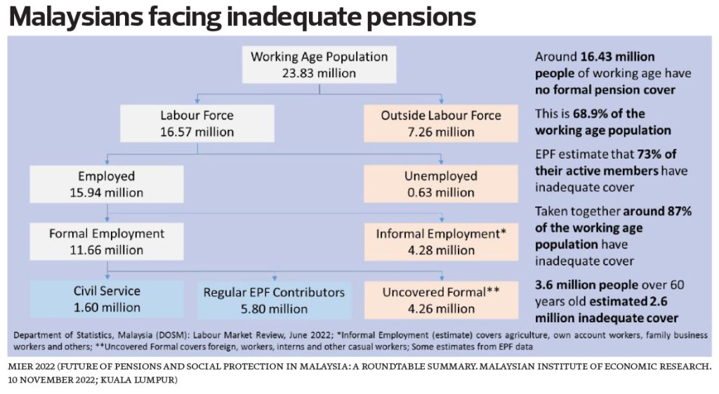 Given the dire state of inadequate EPF savings in Malaysia, with around 73% of members having too little savings by EPF’s definition, the need to set up some kind of Malaysian SuperFund to support a Basic Pension Scheme appears imminent to some experts — that is, a Basic Living Wage provision within the SuperFund that is means-tested and needs-based given that the well-to-do don’t need subsidies or government handouts.