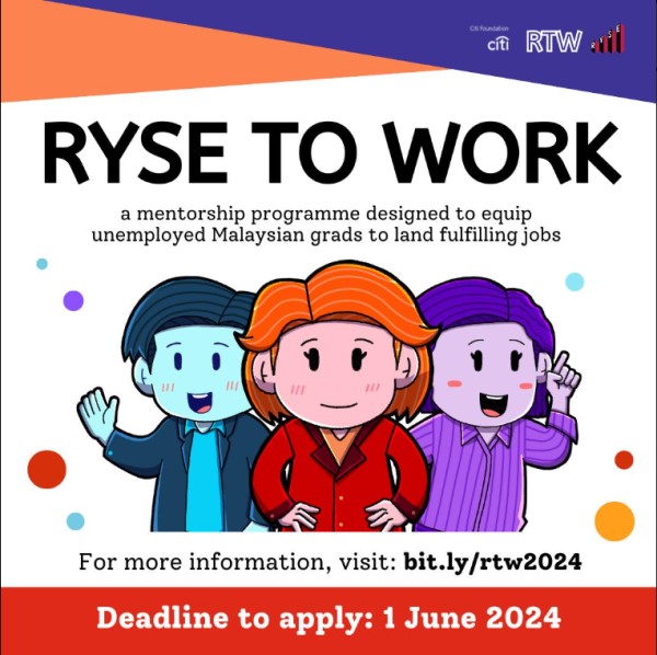 RYSE To Work is an employability programme to provide underemployed and unemployed Malaysian graduates with soft-skills training, social support, career mentoring and mental health counselling to directly support their efforts to achieve full-time employment.